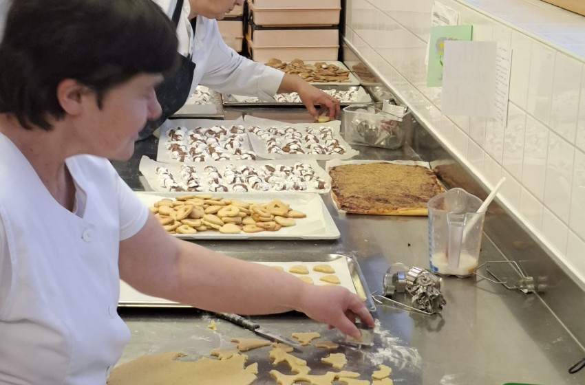 Unser Küchenteam rund um Maria-Luise als "Keks-Chefin" hat den Backofen angeheizt und bäckt fleißig verschiedene Sorten von Keksen für das gesamte Haus.
